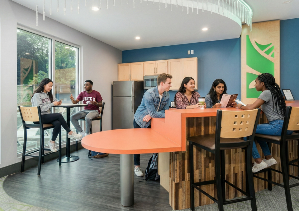 Explore the visual story of life at Abbott Pointe, from our prime location near Spartan Stadium and downtown to the modern interiors of our remodeled kitchens and baths today. Our gallery highlights the spaces where residents thrive, showcasing our spacious living areas, the outdoor pool perfect for gathering with friends, and the sand volleyball court that puts you steps away from campus here. Browse images to visualize your furniture in our open layouts, see our 24/7 fitness studio in action, and discover why our residents love calling this community near Michigan State University home!